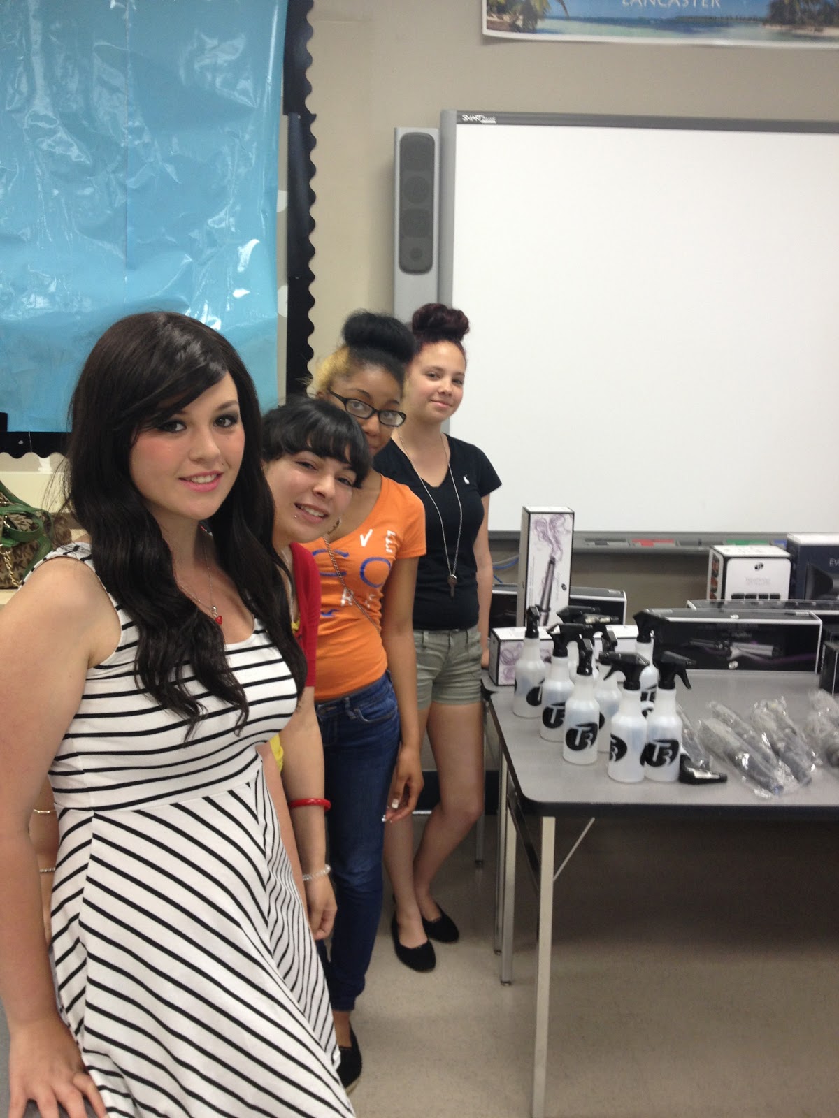 I want to share with you all an amazing experience I had with a class of students at a beauty school program at JP McCaskey High School in Lancaster, Pennsylvania. Their teacher, Andrea Fitzgerald contacted me asking if I could direct her to someone that could help with supplies like hair brushes, blow dryers, curling irons, etc. so the students could get the proper training. She further expressed interest in more education for the students, but did not have the budget.